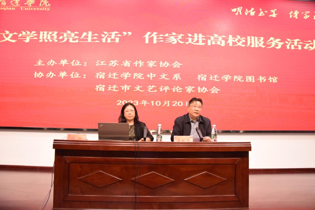 为响应习近平总书记“推动全民阅读、建设书香中国”的号召,10月20日,江苏省作家协会“‘文学照亮生活'作家进高校服务活动”在我院开展,江苏省作家协会副主席、著名作家叶弥,江苏省作家协会联络部三级调研员潘剑,宿迁市文联副主席、宿迁市作家协会主席孟献国,及中文系师生参加了学习与交流。