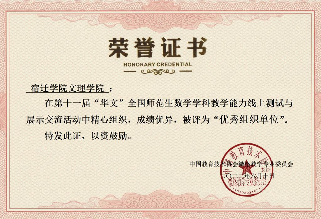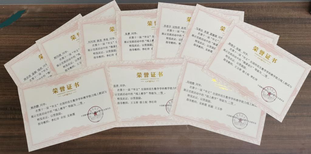 近日,第十一届“华文”全国师范生数学学科教学能力比赛结果揭晓,文理学院数学与应用数学(师范)专业学子表现出色,共获奖10项,19名同学获奖。其中“数学微课设计能力(集体)”组获全国二等奖1组、三等奖4组;“线上数学教学能力测试(个人)”获全国一等奖1名、二等奖4名,创下该专业参加该赛事以来的最好成绩,同时我院也被赛事评为“优秀组织单位”。