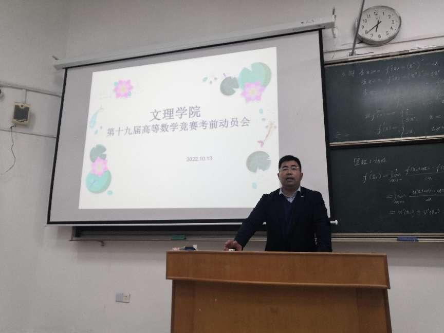2022年10月13日下午,由文理学院大学数学教研室组织的江苏省高等学校第十九届高等数学竞赛考前动员会在3212举行,高等数学竞赛团队的全体教师和全体参赛学生参加了大会。