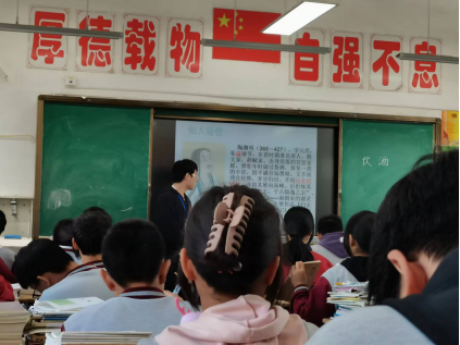 2022年10月12日,宿迁市崇文初级中学的见习生张晓琳在肖庆德老师的指导下,初次登台授课。为同学们讲授《散步》一文。