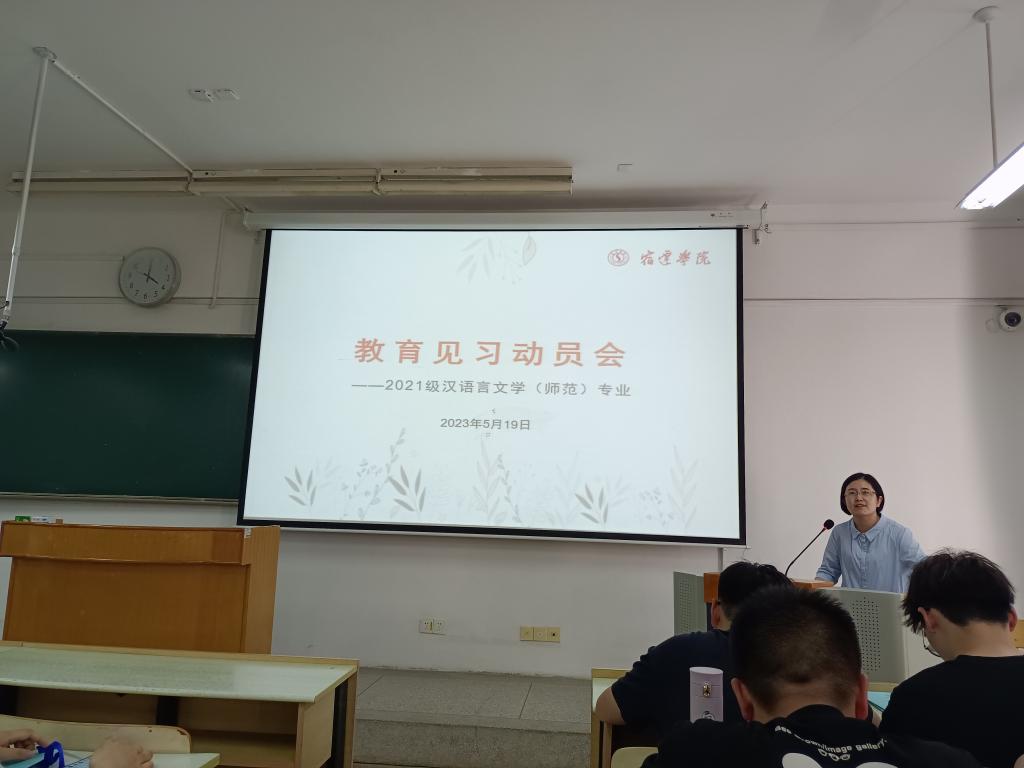 为进一步做好2021级汉语言文学(师范)专业的教育见习工作,保证教育见习顺利进行,5月19日下午,在2202教室召开教育见习动员会。会议由中文系副主任沈宁老师主持,21中师1、2班全体学生和所有实践指导教师参加了此次会议。