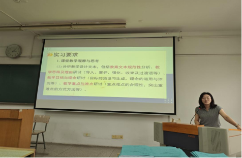 针对实习具体任务,林老师做了细致的讲解。课堂教学方面,学生需要进行课堂教学观摩,从教师的课堂组织、教学方法、教学模式中汲取经验;精心打磨教学设计,深入了解基础教育课程标准的落实情况,学习一线教师备课与教学设计的思路与技巧。班级管理方面,协助班主任开展班级指导工作,观察班主任管理方法与风格;采访优秀班主任,感悟班级管理与中学生成长之间的关系;与不同年级学生交流,了解中学生学习心理与成长特征。此外,要积极参与各种教研活动,研习优秀教师教学经验并且提升教育科研意识。