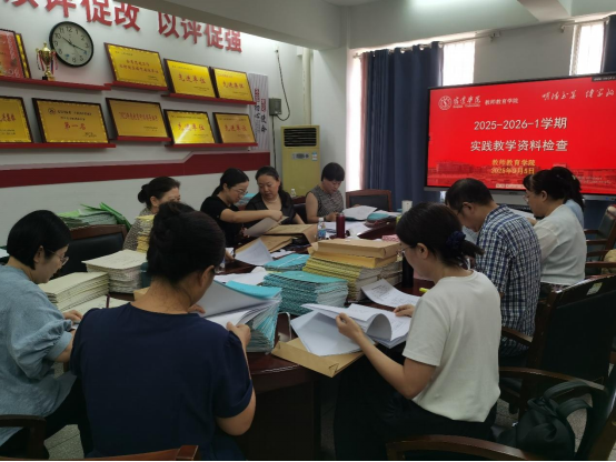 2025年9月5日上午,我院组织开展了2024-2025学年第二学期实践教学资料专项检查工作。本次检查由院党委委员张冉老师带队,学院教学督导组全体成员参与,旨在进一步规范实践教学管理,提升师范生实践能力培养质量。