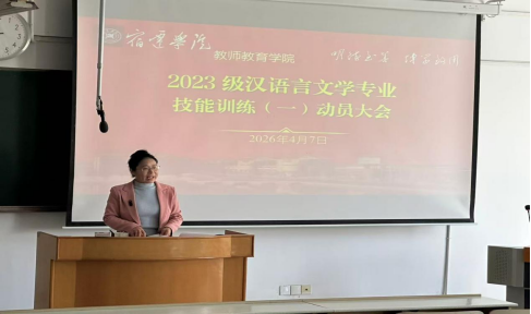 为明确汉语言文学专业技能训练核心内容与考核标准,全面提升学生职业核心竞争力,2026 年 4 月 7 日,教师教育学院 23 级汉语言文学专业技能训练动员大会在 2205 教室顺利召开。文秘系副主任王梅老师出席会议并作专题动员。