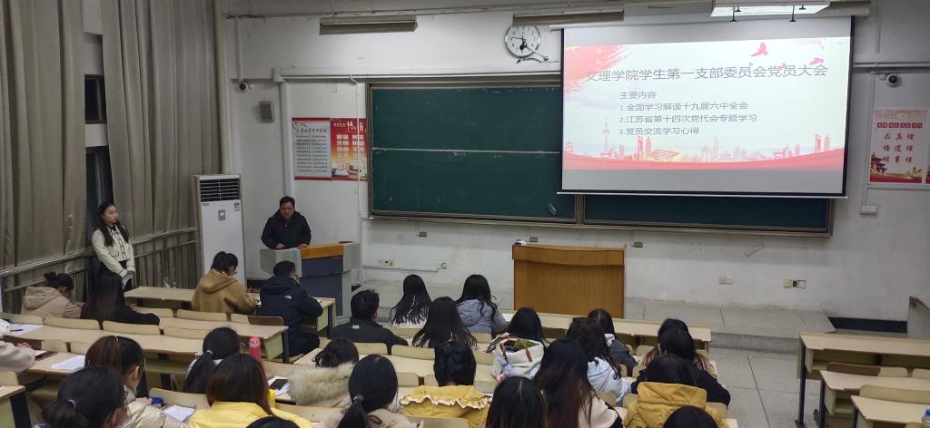 2021年12月2日,文理学院学生第一支部委员会召开党员大会,传达学习贯彻党的十九届六中全会精神和江苏省第十四次党代会精神。