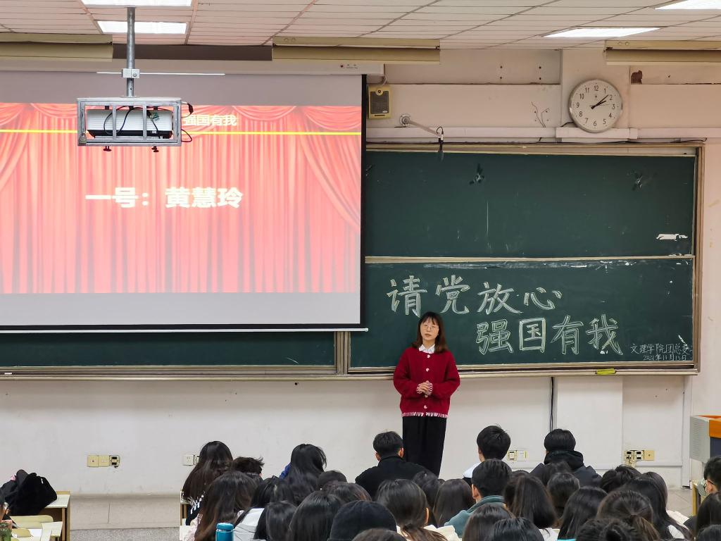 2021年11月13日下午14:00,文理学院“请党放心,强国有我”大学生演讲比赛初赛在二号教学楼209教室举行。