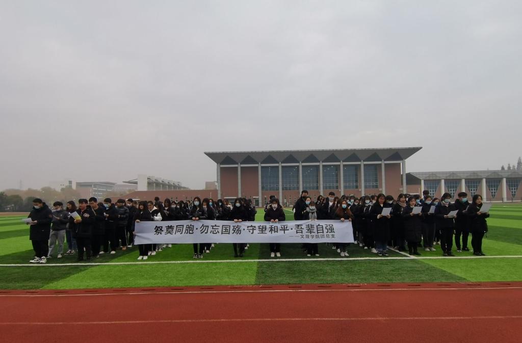 2021年12月11日上午8:00,文理学院“12.13国家公祭日”主题教育活动在操场举行。