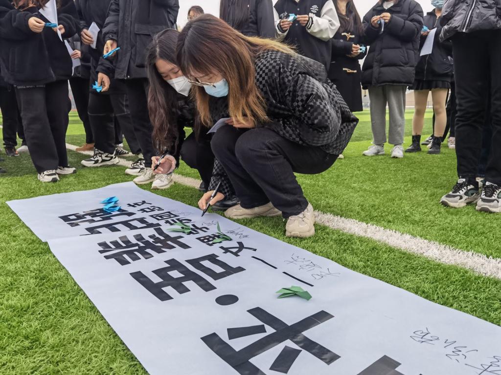活动以朗读《和平宣言》、制作和平鸽、在横幅上签名的形式开展。一起一落,不仅寄托了同学们对死难同胞浓浓的哀思,也表达了新一代青年不忘国耻、亲手捍卫祖国尊严的决心。
