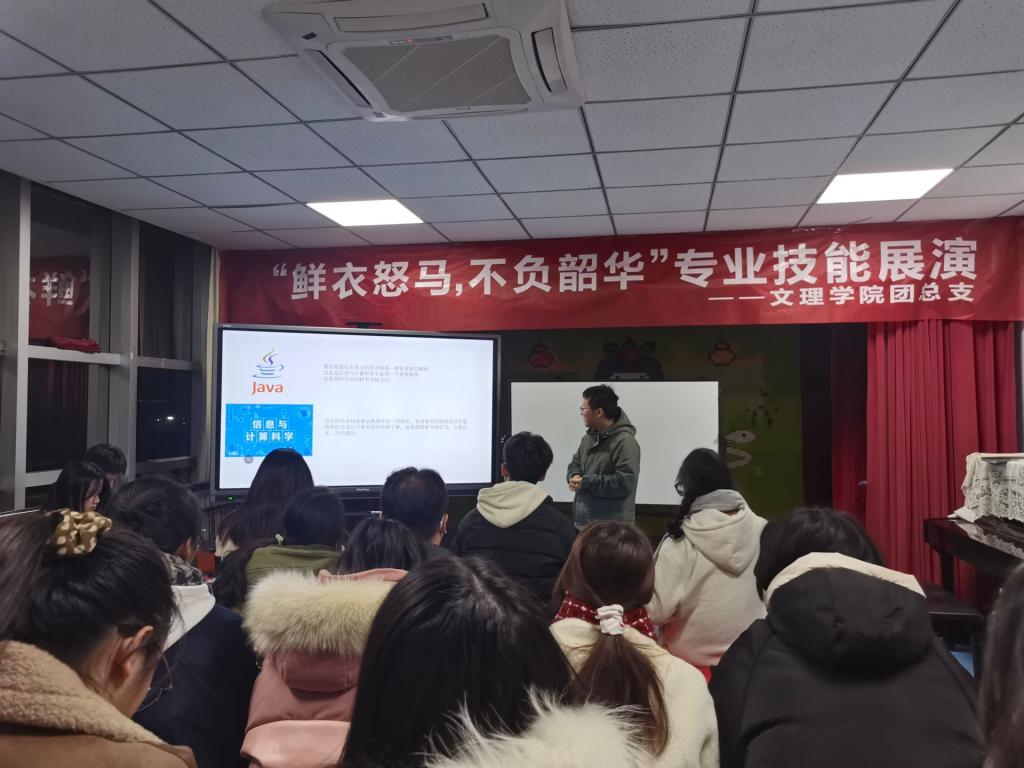 2021年12月18日,文理学院“鲜衣怒马,不负韶华”首届专业技能展演活动在一号教学楼610教室举办。