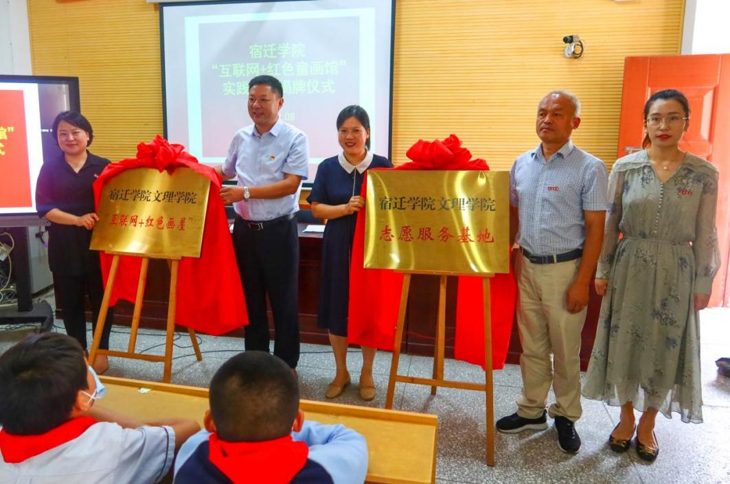 在仰化中心小学,举行了宿迁学院“互联网+红色童画馆”实践基地揭牌仪式。“互联网+红色童画馆”秉承先进的OBE教育理念,以成果产出为导向,深入推进宿迁学院实践教学改革创新模式探索。宿迁学院将选拔优秀的在校大学生利用课后延时辅导,为童画馆的孩子们进行线上义务授课,优秀作品将纳入学前教育系每年一届的“六一”教学成果展。文理学院将把“互联网+红色素质教育”系列支教活动做到实处,积极推广我市红色文化,开展红色教育活动,助力提升我市农村基础教育水平和审美素养。
