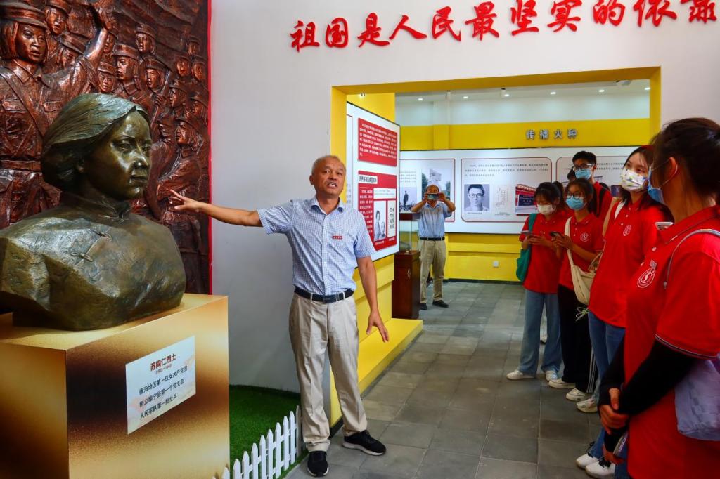 在宿迁市宿豫区仰化中心小学,文理学院学子和小学生一起聆听了宿迁市第一位女共产党员苏同仁的优秀事迹。苏同仁不仅是徐州社会主义青年团第一批团员及团组织首任领导班子成员、徐海地区第一位女共产党员、睢宁县第一个中共支部创立者,还参与筹备中共福建一大、代表中国妇女参加在欧洲举行的“三八”国际妇女节纪念大会,更在长期从事党的地下工作过程中创造了诸多英雄传奇故事。在苏同仁烈士身上,我们学习了伟大的革命精神、伟大的拼搏精神、伟大的爱国主义精神。大朋友、小朋友们共同传承红色基因,积蓄红色能量,拥抱新的校园生活。
