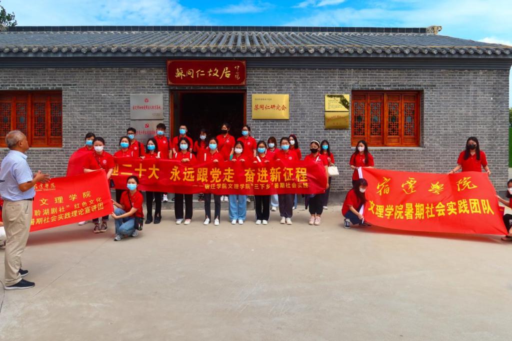 为深入学习贯彻习近平新时代中国特色社会主义思想,实践习近平总书记在庆祝中国共产主义青年团成立100周年大会上的重要讲话精神,迎接党的二十大胜利召开,宿迁学院“聆湖剧社”暑期社会实践团队策划实施了“互联网+红色素质教育”系列党史宣讲活动。本次社会实践聚焦“红色故事”、“红色基地”、“红色童画”三大模块,将师范生专业教育与社会实践充分结合,开展了丰富多彩的活动。实践活动中,宿迁学院文理学子将红色理论学习与宣传教育结合;结合学院专业优势,发扬新时代的青年力量;探索“互联网+红色素质教育”,并以师范精神关爱乡村儿童开展志愿支教等。参观红色基地,传播红色基因;发扬青年力量,致敬巾帼英雄;践行师范精神,担负社会责任。他们在讲中做,做中学,学中悟,不断提高自身综合素质,强化自身社会责任意识,展现新时代青年勇于担当,乐于担当的风采,从而唱响“喜迎二十大永远跟党走奋进新征程”的学院强音。