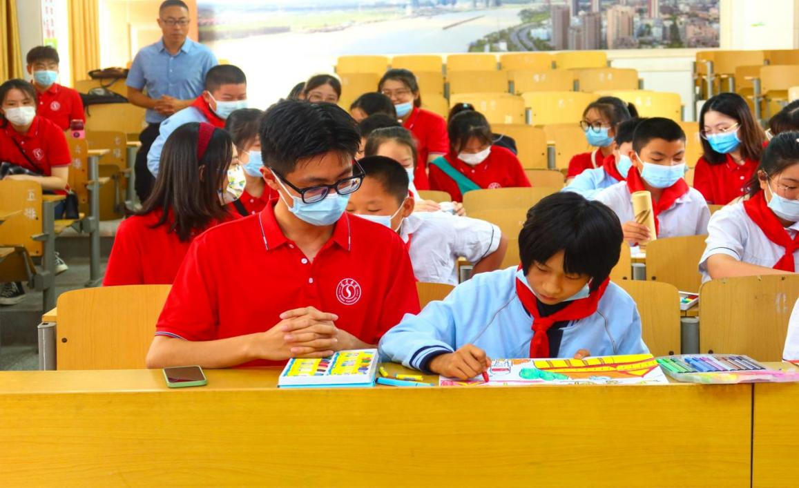 在仰化中心小学,大学生和小学生一起描绘“喜迎党的二十大”主题画卷,把爱国之情、报国之志融入画面。孩子们以画传情、以画抒志,一幅幅满含深情的作品纷纷跃然卷上。这些充满质朴童真的画作,传达出孩子们对党的感恩之情和对祖国的美好祝愿,也让孩子们在生动有趣的动手实践中,进一步增强了对党和国家、民族的认同感与自豪感。