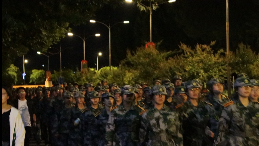 9月19日晚上十点,新生进行了夜间五公里拉练。急促号音睡梦惊,快步狂奔大路行。匆忙列队飞如箭,避短扬长再练兵。”军事训练磨砺着人的方方面面,而紧急集合也往往是这军训中的重头戏。面对紧急集合的高昂号角突然吹响,二营九连的同学们整齐划一、忙而不乱,为首次集合任务交出了一份优秀的答卷。