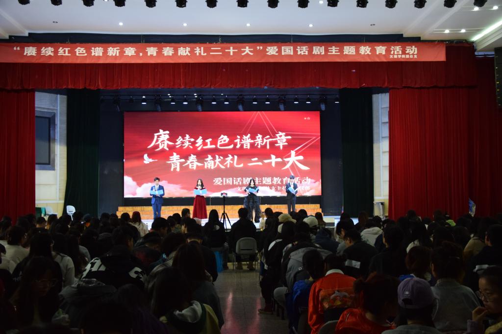 为继承发扬爱国情怀,使青年学子更加深入了解中国共产党的光辉历史,认识党走过的艰辛历程,激发爱党爱国的情怀。10月15日上午,文理学院于大学生活动中心举办“赓续红色谱新章 青春献礼二十大”爱国主题话剧表演活动。
