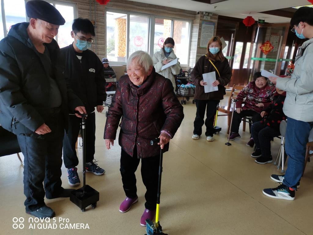 3月19日,文理学院与信息工程学院401“助老好行”团队来到宿豫区老年公寓,邀请老人们体验团队研发的智能拐杖。
