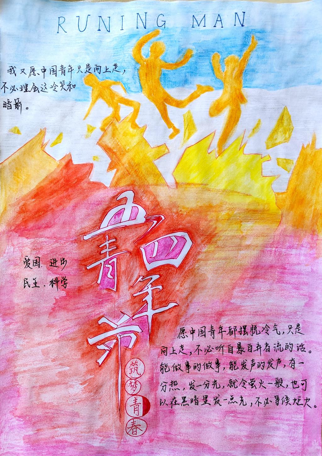 笔墨渲染“忆五四”。参赛选手借助笔墨绘制“五四”心灵画卷,传递文理学子对党、对祖国、对家乡、对学校的无限热爱。活动中,各位选手通过国画、油画、书法水粉、水彩等多种艺术手法展现了西楚大地壮美山河、悠久历史的斑斓色彩,反映了文理青年对党史、校史、西楚文化史的深入领会和深沉情感。