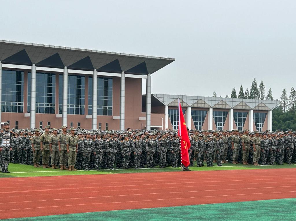 秋意正好,高楼齐天,风云同歌,共祝启航。目光如炬,信念由此迸发。军帽的阴影遮得住烈阳的炽热,却无法阻挡望穿未来的坚毅目光。教官身着军绿迷彩,铿锵军魂正磨砺着每位每位学生的身心。