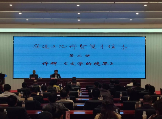 许辉先生的讲座从“我对宿迁的乡情、文学的九境界”,讲解他对宿迁的情愫,分享他对文学创作九重境界的理解以及进行现场互动问答加深文化相关内容的交流和理解。
