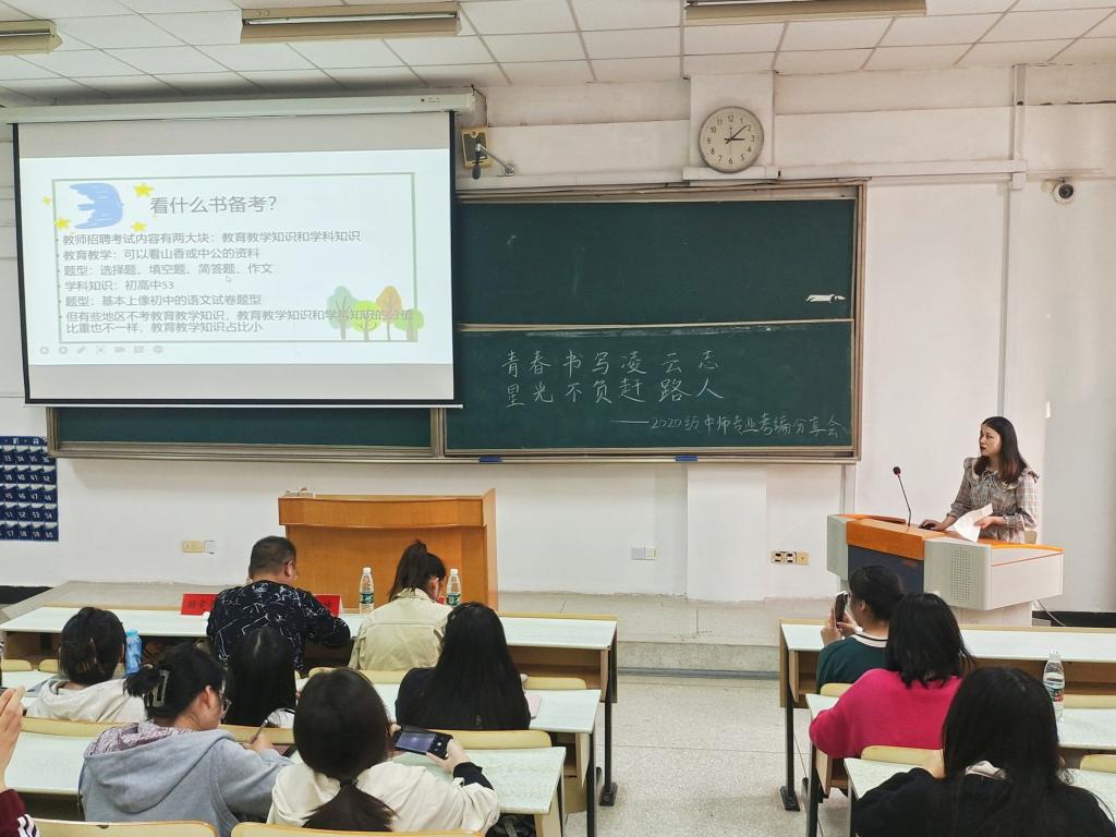 青春书写凌云志,星光不负赶路人。2023年10月14日下午,文理学院2020级中师、数师专业考编经验分享会在2号教学楼209教室和2号楼108教室举行。