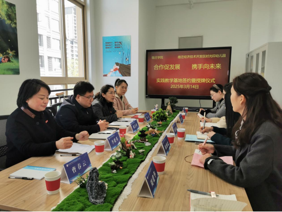 刘文副院长介绍了我校办学历程、公办以来取得的卓然成就、人才培养理念及实践教学标准。表示,实践教学作为学前教育专业的重要环节,对于提高师范生的实际保教能力、增强职业认同感具有至关重要的作用。接下来,我们将与时光印幼儿园展开紧密合作,共同制定实践教学计划、组织实践教学活动、开展实践教学研究,确保实践教学工作取得实效。同时,我们也期待时光印幼儿园的老师们能够积极参与到实践教学工作中来,共同促进师范生的成长与发展。