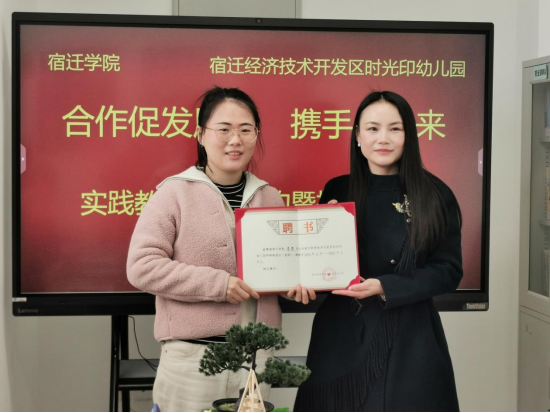 会上,嵇书记为蔡园长颁发了教师教育学院兼职教授聘书,刘院长为幼儿园授牌,蔡园长为刁力主任颁发了业务园长聘书。与会人员共同参观了时光印幼儿园的教学环境和设施,并与幼儿园的老师们进行了深入的交流和探讨,双方一致认为,此次合作将在人才培养、教师专业成长、校本课程资源开发建设、基础教育科学研究等方面提供新的契机。
