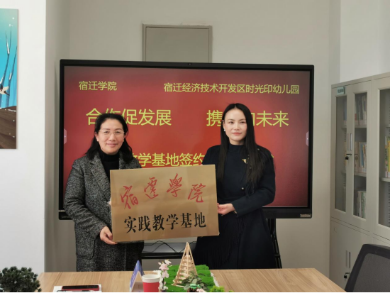 3月14日上午,宿迁学院实践教学基地签约授牌仪式在宿迁经开区时光印幼儿园圆满举行,教师教育学院党委书记嵇会祥、副院长刘文、学前教育系主任李建英、副主任刁力、教师代表曹春云和时光印幼儿园园长蔡佐好、园办主任周建华、副园长陈雅瑞等出席授牌仪式。