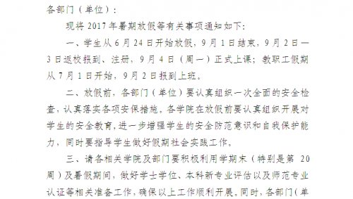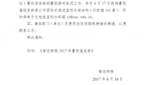 关于转发宿迁学院《关于2017年暑假的通知》的通知