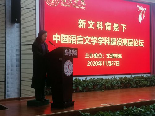 11月27日下午,文理学院在图书馆学术报告厅举办了“新文科背景下中国语言文学学科建设高层论坛”。副校长丁红燕教授、科技处韩军处长、文理学院院长陆海霞教授、文理学院刘文、吉益民、赵士银三位副院长、外国语学院沈刚、王纯磊两位副院长、中文系负责人和全体教师以及20中师1班同学参加了论坛。来自省内东南大学、扬州大学、江苏师范大学、南通大学、江苏海洋大学等7所高校的知名专家在论坛上就中文的学科与专业建设做了精彩的报告。论坛分为两个阶段,第一阶段由文理学院院长陆海霞教授主持;第二阶段由文理学院副院长吉益民教授主持。