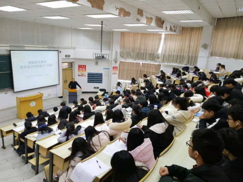 12月16日下午14:30在2号教学楼308教室,宿迁市实验学校副校长张诚老师受邀前来我院做题为《例谈初中数学教学设计中的四个“分析”》的专业讲座,数学系副主任郁爱军主持了此次讲座,我院数学专业2019级、2020级共150余名学生参加。