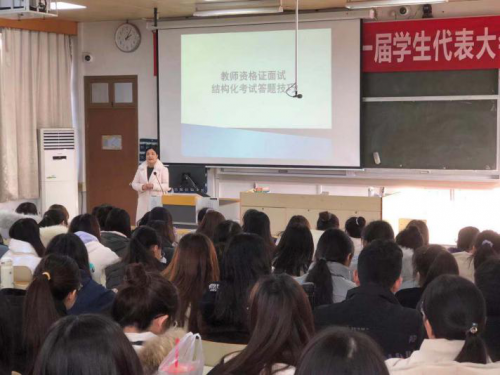 为了提高师范专业学生的教师资格证考试通过率,提高师范生教学基本功,坚定教书育人的职业信念,传承中华师道,成为有理想信念、有道德情操、有扎实学识、有仁爱之心的“四有”好老师。2020年12月23日下午,文理学院聆湖大讲堂系列讲座第十三场——“新国考背景下,教师资格证面试中结构化问题的答题技巧策略研究”讲座在宿迁学院一号教学楼第六阶梯教室召开。参加本次活动的有小学教育系主任杨传达、部分教师代表以及2018级小学教育专业师范生。