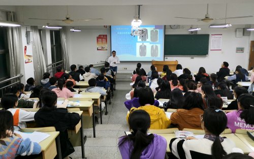 10月23日晚6时30分,讲座在2404教室准时开始,来自2019级汉语言文学专业100余位同学仔细聆听了讲座内容。黄处长首先介绍了人际交往时的礼仪原则,强调关注细节的重要性;接着,他又分别从服饰仪表、名片礼仪、电话礼仪、乘车礼仪、餐饮礼仪等不同方面,为同学们剖析了文秘人员在工作中需要注意的基本礼节。黄处长的语言幽默风趣,许多工作中的实例信手拈来。在座同学无不聚精会神地听讲,并认真记录笔记。