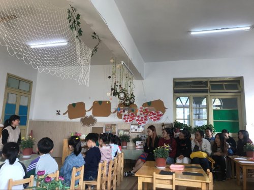 尤园长从幼儿园艺术活动的特点、艺术活动的组织、教师该如何实施等方面向同学们做了详细解说。在此基础上,张丽丽和杨妍两位骨干教师结合讲座内容分别开设了大班美术活动《美丽的菊花》和小班韵律活动《抱一抱》,两位老师的活动契合幼儿活动特点、形式新颖,使学生受益颇多。在观摩完幼儿园老师的示范课后,16学前的卞慧蓉和董燕菲分别向幼儿园老师展示了他们准备的教学活动:大班绘画《菊花》、中班语言《月亮的味道》。尤园长、张莉园长和两位老师从活动设计、活动的开展、活动过程中教师的表现等方面对两位同学的表现做了点评,他们指出两位同学的活动设计逻辑清晰,存在的主要问题是表现力不足,特别是语言的表现力,要能够用语言去表达重难点、吸引儿童注意力。