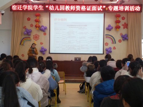 2019年1月2日下午,宿迁市实小幼儿园潘红园长为我院2016级学前教育专业学生进行“幼儿园教师资格证面试”专题讲座。