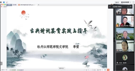 活动由中文系主任张春红老师主持,中学语文教学研究虚拟教研室全体成员参加了观摩学习与研讨交流。主讲嘉宾李莹老师为牡丹江师范学院“课程思政教学名师”,曾获省级微课教学大赛一等奖。李莹老师先是简单介绍了课程设计理念与思路,然后就用具体的教学案例如苏轼的《念奴娇•赤壁怀古》,给大家示范了如何引导学生把握古典诗词的鉴赏方法,总结鉴赏思维;之后,李莹老师又借助对孟浩然《宿建德江》、杜甫《登高》的分析,给中文系师生展示了诗歌的鉴赏路径,诸如聚焦诗眼、剖析思想、探究句典、体会修辞、领悟意境等。