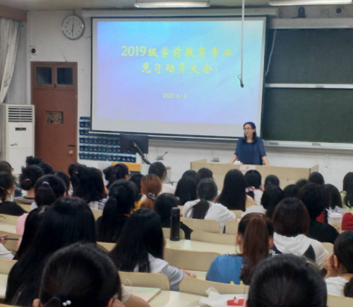 9月14日晚6点半到7点半,文理学院学前教育专业19级学生见习动员大会在四阶召开。本次动员会由刁力老师主持,2019级学前教育专业全体同学及两位专业导师参加了活动,文理学院刘文副院长莅临指导。