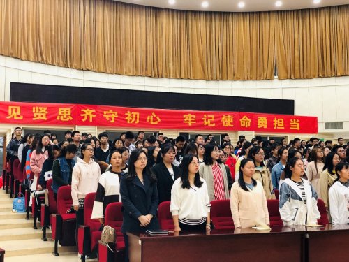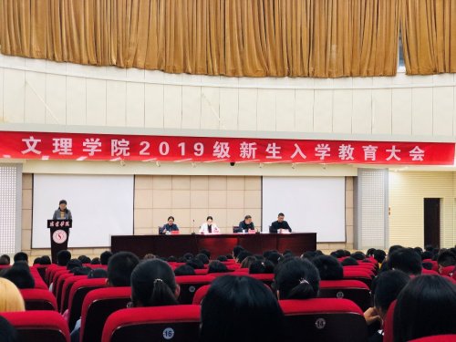 2019年10月11日,文理学院在新图报告厅举办了2019级新生入学大会。大会在雄壮的国歌《义勇军进行曲》后拉开了序幕。首先由李明善书记宣读和表彰了2019级军训先进个人,接着由优秀学生代表发言,17中师1孙菡濛分享了自己的学习阅历和经验,19小教1钱筱萌描绘了对未来宿院的憧憬。最后由李书记和陆院长讲话,表达了对新生们的殷切期盼,向新生们提出了各专业的学科要求,制定了学子们要达到的目标。李书记借用习近平总书记的三句新年祝词来鞭策我们:“撸起袖子加油干”“幸福是奋斗出来的”“我们都在努力奔跑,我们都是追梦人”。我们希望19级新生们在宿院的四年里,珍惜最美好的年龄与时间,不忘初心砥砺前行,努力成为更好的自己,谱写我们文理学院的青春华章。