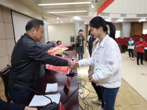 颁奖结束后,获奖学生代表龚思佳同学进行汇报发言,一方面她强调了在大学期间学习的重要性,指出了取得优异成绩的背后离不开踏实勤奋,努力刻苦;另一方面她代表广大同学向中兴科技公司和学院领导、老师们表达了感恩之情,感谢他们的辛勤付出与栽培。