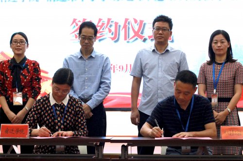 在这次会议上,我校与三十多个基地学校新签了共建教育实践基地合作协议。会议现场,举行了宿迁学院分别与宿迁市钟吾初级中学、沭阳县第二实验小学、宿迁市实验小学幼儿园等实践基地协同育人签约仪式。