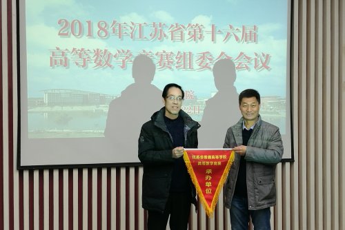 会上,江苏省高等学校第十五届高等数学竞赛承办方南京工业大学浦江学院王建成副校长与我校孙以泽副校长进行了竞赛承办单位交接旗仪式。会议讨论修改了关于江苏省高等学校高等数学竞赛竞赛的章程,并议定了第十六届高等数学竞赛的竞赛分级、赛事组织、竞赛时间、竞赛经费等内容。