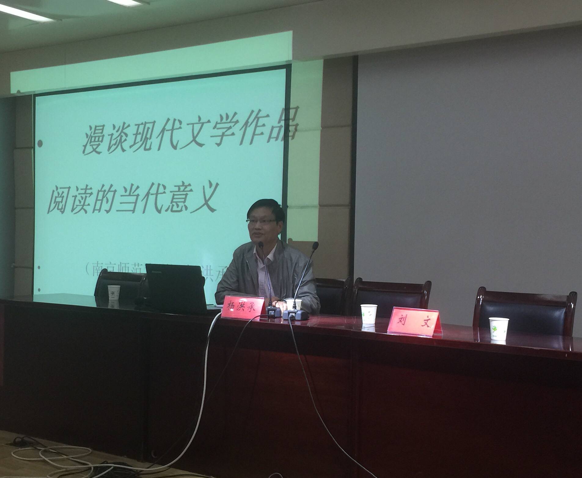 4月19日下午,南京师范大学文学院博士生导师杨洪承教授应邀来我院作题为《漫谈现代文学作品阅读的当代意义》的学术报告。报告会由文理学院中文系主办,在校新图书馆报告厅举行。报告会由文理学院副院长刘文主持。文理学院中文系全体老师及400余名学生聆听了报告。