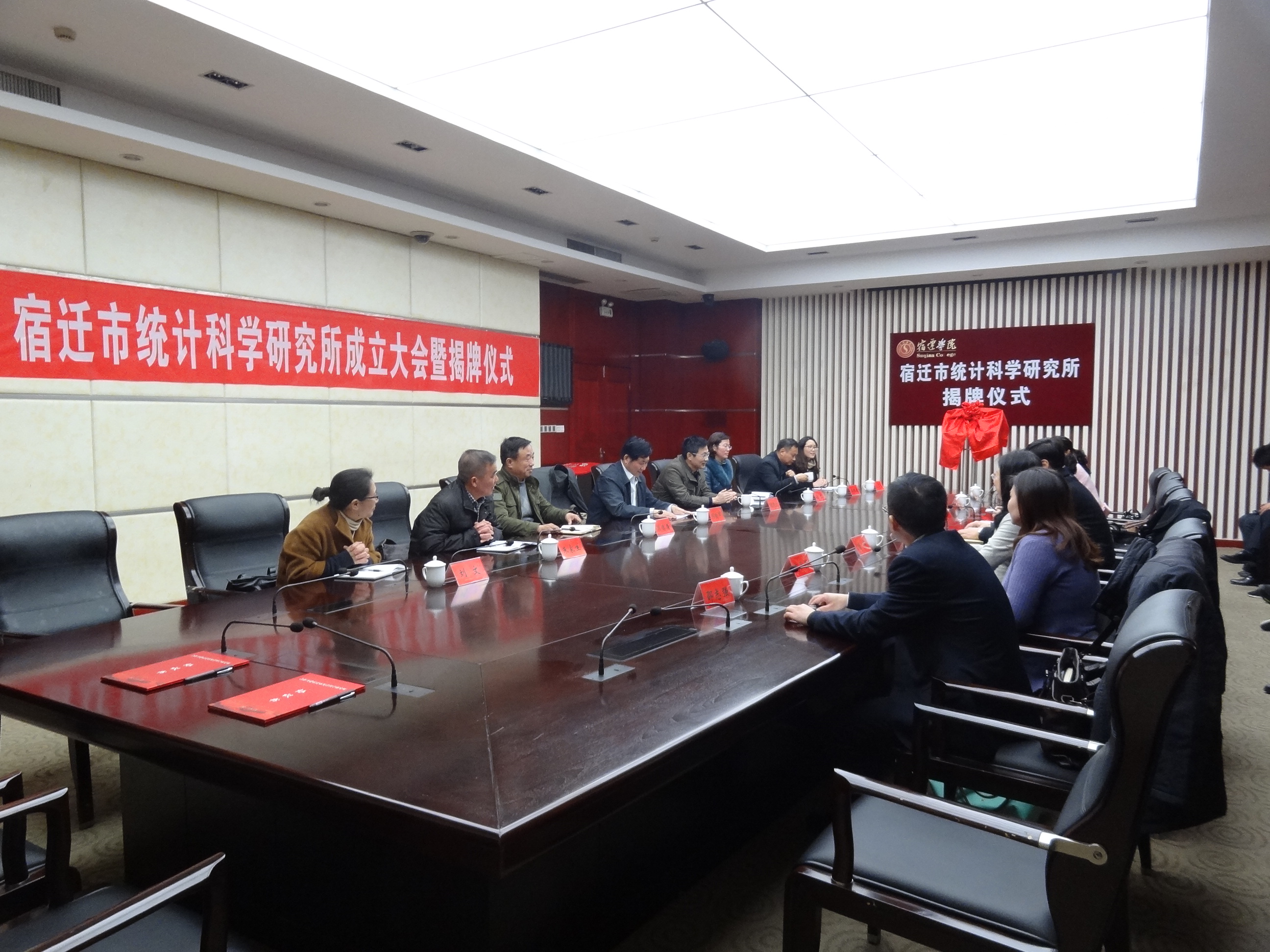 3月8日下午,宿迁市统计科学研究所成立大会暨揭牌仪式在我校新图书馆视频会议室举行。江苏省统计科学研究所所长王思彤、宿迁市统计局局长后宁,我校校长闵铁军、党委副书记、副校长熊建文及有关职能部门负责人等出席会议。会议由宿迁市统计局副局长李月梅主持。