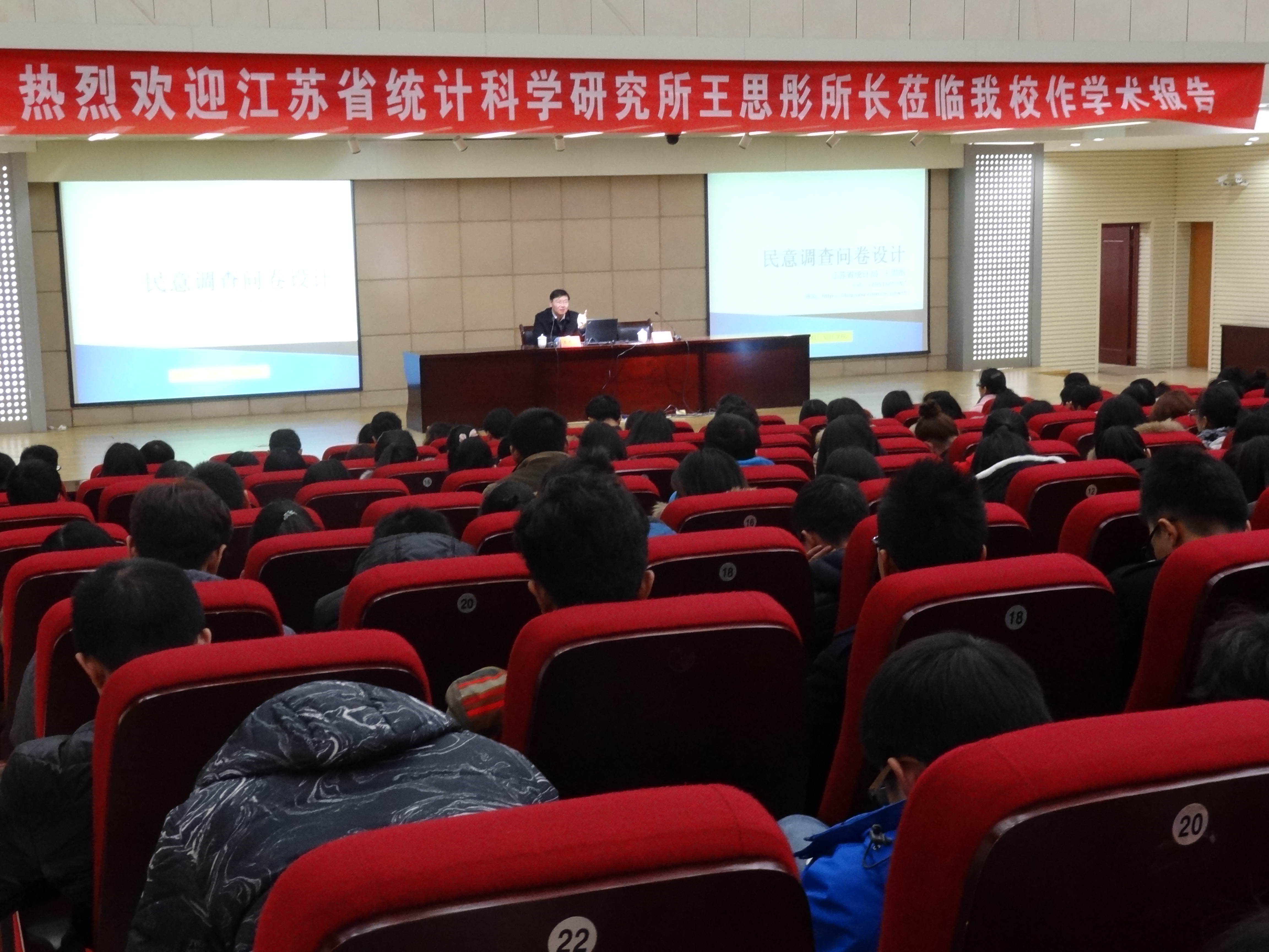 3月8日下午,江苏省统计科学研究所所长王思彤莅临我院作题为“民意调查问卷设计研究”学术报告,报告由我院副院长陆海霞主持。王所长报告精彩、风趣,博得了在座师生的阵阵掌声。