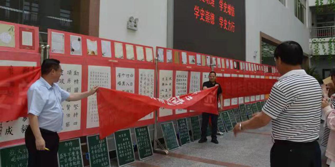 翰墨情缘 群贤毕至。为庆祝中国共产党百年华诞,“文理学院师范生歌盛世颂党恩书法展”,在校图书馆一楼大厅于2021年5月28日隆重开幕。文理学院吉益民副院长、教育系杨传达主任、书法教师孙红林及120名学生代表参加了当天的揭幕仪式。展期到2021年6月15日结束。