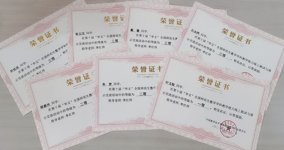 4月24日至5月31日,2021年第十届“华文”全国师范院校数学师范生数学创课能力线上测试与展示交流活动圆满落幕。文理学院数学系积极组织学生参赛,来自2018级、2019级7名同学参加两个阶段的激烈角逐,所有选手皆斩获奖项,其中叶玉蛟获一等奖、薛嘉伟、朱梦获二等奖、石永烨、张玉洁、华佳辰、戴馨获三等奖。本次大赛由中国教育技术协会微格教学专业委员会主办,广西师范大学大学承办,有南京师范大学、广西师范大学、重庆师范大学、南京晓庄学院、江西师范大学等全国58所高校、382名选手参加此项活动。