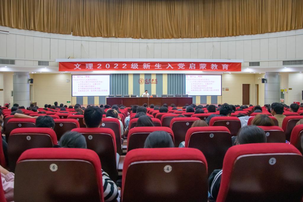 9月21日,文理学院在新图二楼报告厅举行2022级新生入学教育大会和入党启蒙教育大会。会议由副院长刘文主持,学院领导、部分学科专业系主任、2022级全体辅导员参加会议。