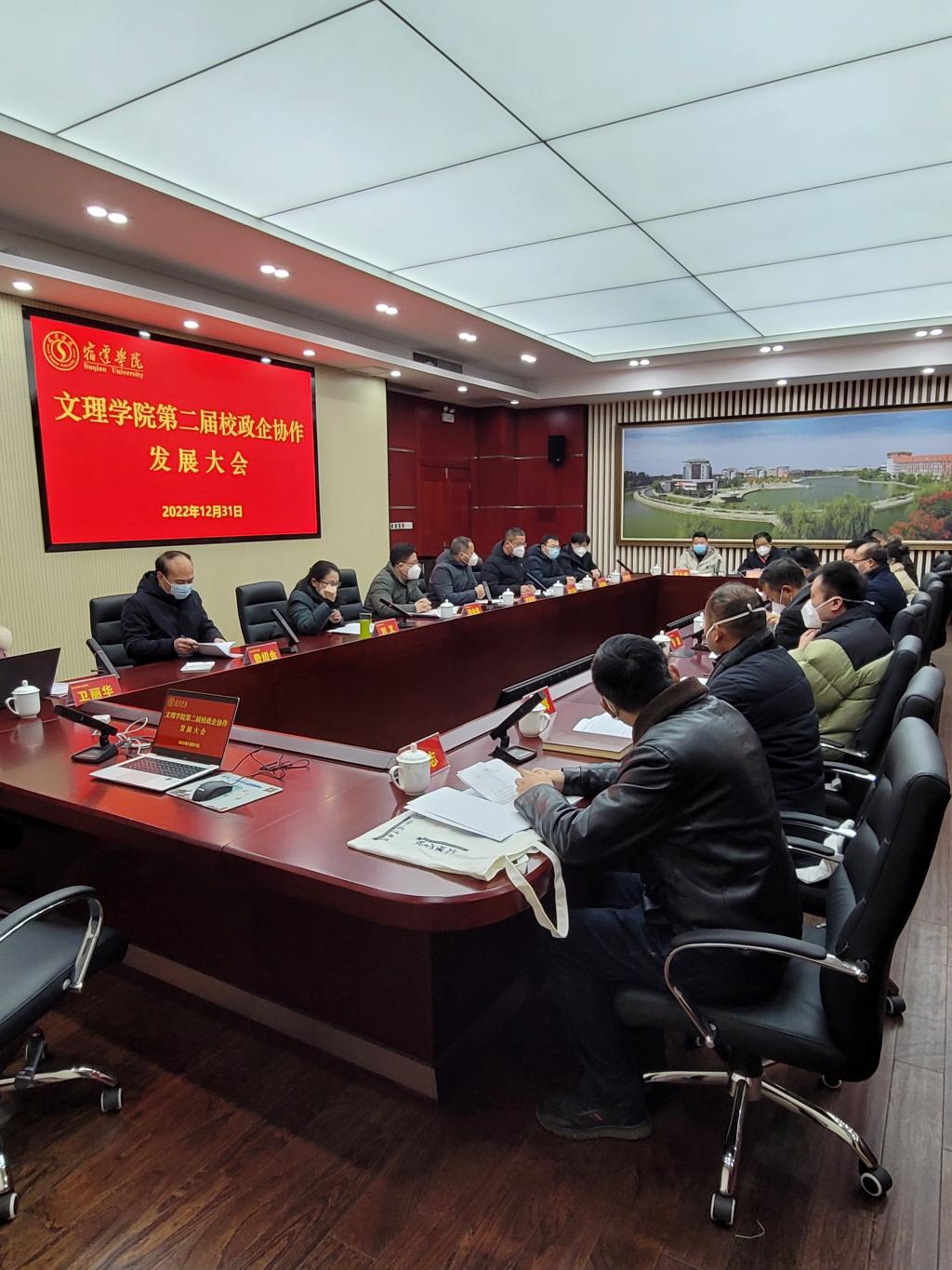 为进一步深化校政企合作对接,加快产教研融合深化,推进人才培养模式创新和教育教学改革,更好地为宿迁地方经济和行业、产业、企业发展服务,我院于2022年12月31日上午在学校图书馆一楼视频会议室召开第二届校政企协作发展大会。宿迁市卫生和健康委员会、宿迁市疾病预防控制中心、宿迁市统计局、宿迁市农业农村局、宿迁市宿城区博物馆、宿迁市宿城区文化馆等市、区政府部门,中兴软件技术(济南)有限公司、上海棱星数据技术有限公司、江苏江苏云思教育科技有限公司等省内外知名企业。会议由文理学院副院长刘文教授主持,校科技处副处长吉益民教授、我院全体院领导及相关专业教师参加了会议。
