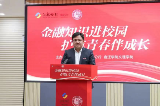 江苏银行宿迁分行的志愿宣讲员、江苏银行职员陈一菲根据学生群体生活、消费特点,宣讲了非法校园贷、校园电信诈骗相关金融知识,活动现场成立了“金融知识进校园”联合志愿宣讲团。