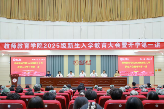 9月18日下午,教师教育学院2025级新生入学教育大会暨开学第一讲在图书馆二楼报告厅举行。院领导班子、各系主任、师生代表、全体辅导员、新生班助及2025级全体新生参会。大会由院党委副书记刘家豪主持。