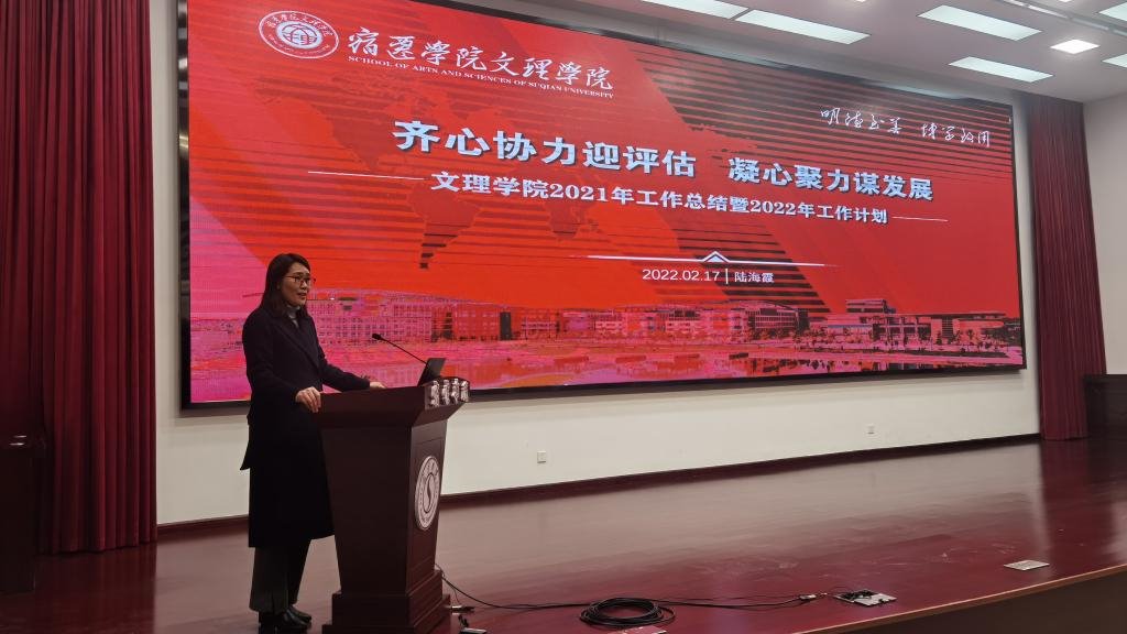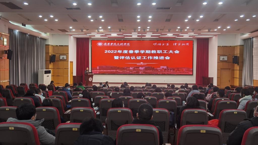 2022年2月17日下午,文理学院2022年度春季学期教职工大会暨评估认证工作推进会于老图书馆报告厅顺利举行。文理学院全体领导班子成员和所有內聘教职工参加了会议,文理学院副院长(主持工作)陆海霞和党委副书记嵇会祥分别做了讲话和工作安排,会议由副院长刘文主持。